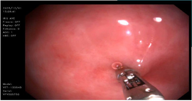 Figuur 3. Endoscopisch beeld van het via endoscopie nemen van een duodenum-biopt (foto met dank aan drs. Hanneke Panhuijzen, DAP Bodegraven).