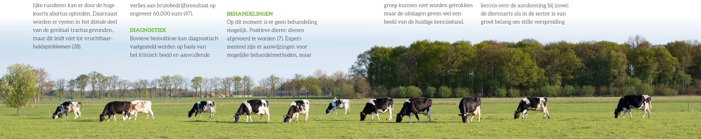 In Nederland is nog geen met B. besnoiti geïnfecteerd rund aangetroffen, maar er wordt ook niet of nauwelijks op getest. Met meer dan 10.000 geïmporteerde runderen uit endemische landen per jaar, is het niet de vraag of, maar wanneer de eerste casus zich aandient. Tijd om de bekendheid te vergroten: maak kennis met boviene besnoitiose.