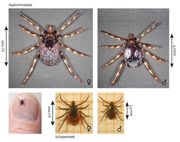 De teek die twee weken geleden in Drenthe werd gevonden, blijkt inderdaad een Hyalomma marginatum te zijn. Bij (huis)dieren is bekend dat ook deze teken bij paarden kunnen zorgen voor Piroplasmose.